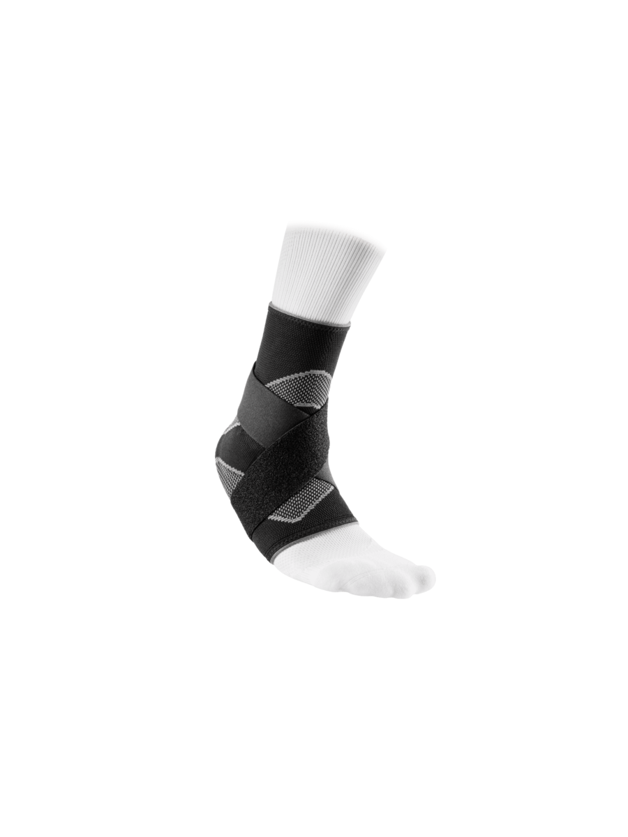 Stabilizator stawu skokowego z wkładkami żelowymi wokół kostek dla uzyskania efektu przeciwbólowego związanego z zapaleniem stawów i ścięgien oraz dla stabilizacji.
