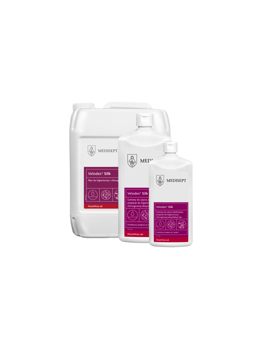 Płyn do higienicznej i chirurgicznej dezynfekcji rąk. Velodes® Silk to alkoholowy, gotowy do użycia produkt przeznaczony do higienicznej i chirurgicznej dezynfekcji rąk w obszarze medycznym, sektorze żywnościowym, w warunkach przemysłowych i domowych oraz w zakładach użyteczności publicznej, a także do dezynfekcji powierzchni mających i niemających kontaktu z żywnością.