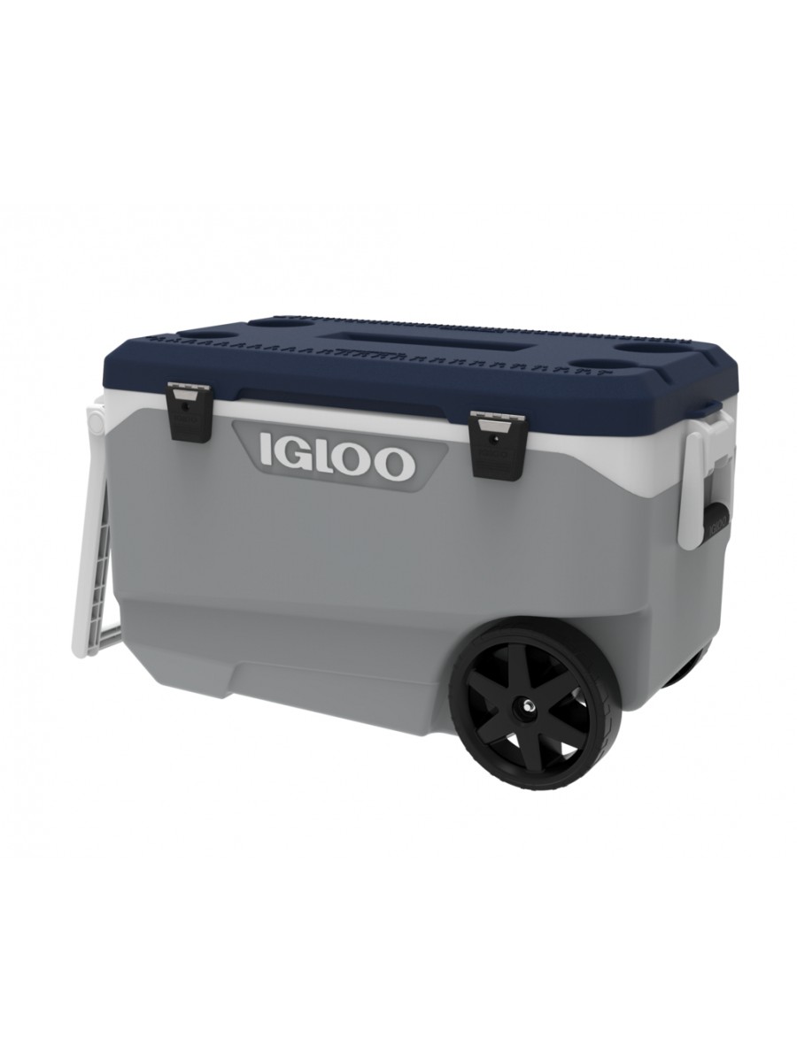 Igloo Maxcold Latitude 90 to lodówka na kółkach idealna do pracy na zewnątrz. Uchwyt umożliwia łatwiejszy transport i zmniejsza obciążenie nawet o 50%. Ponadgabarytowe kółka zapewniają mobilność w każdym terenie.