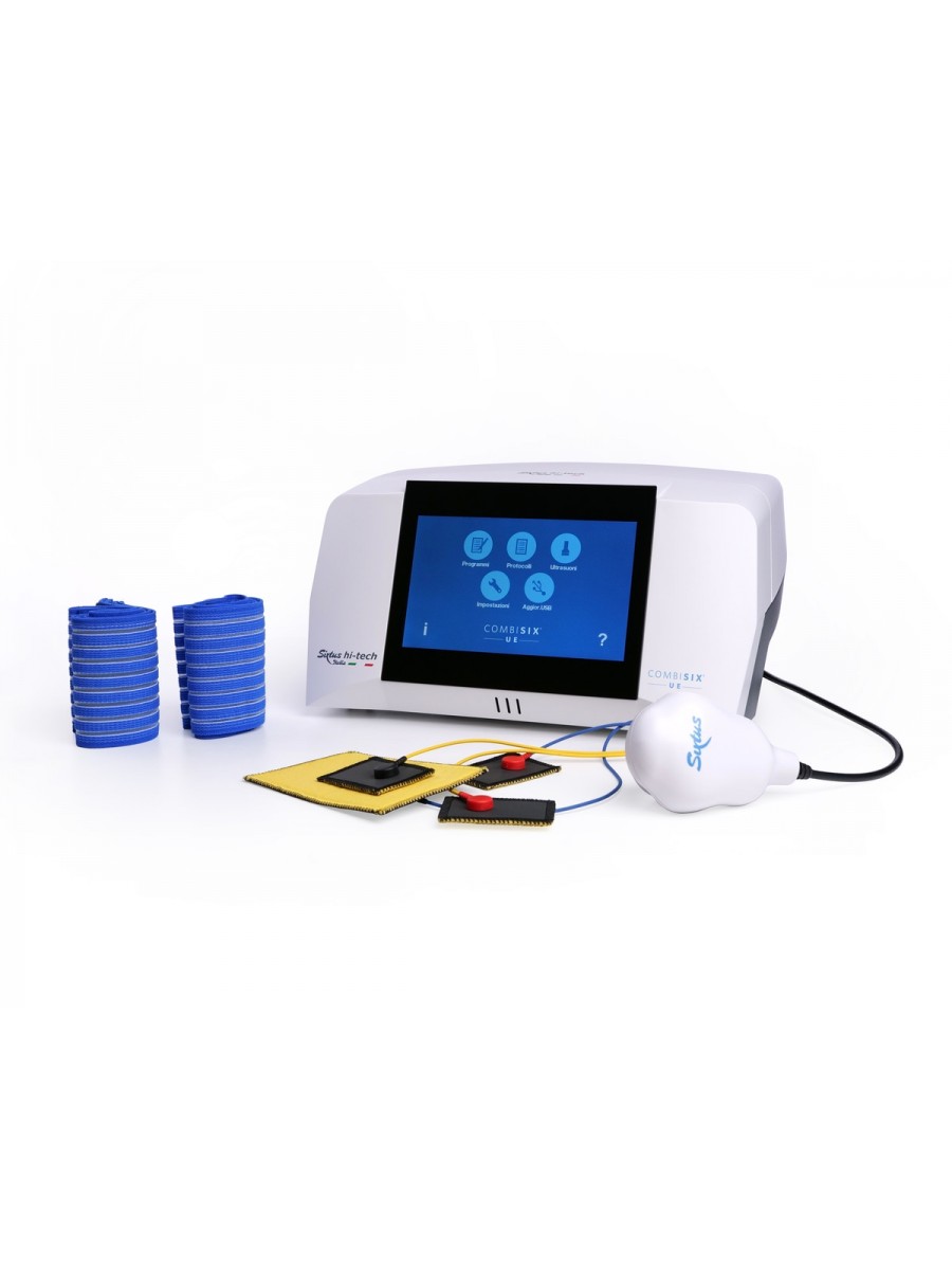 CombiSix UE to mobilna terapia ultradźwiękowa o częstotliwości 1,2,3 MHz; połączona z dwukanałową elektroterapią.