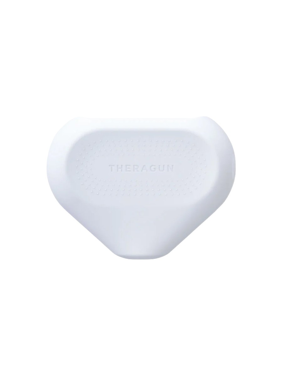 Silikonowy pokrowiec na Theragun mini, chroniący urządzenie przed zadrapaniami i zabrudzeniami. Pokrowiec w każdej chwili można zdjąć w celu wyczyszczenia i użyć ponownie.