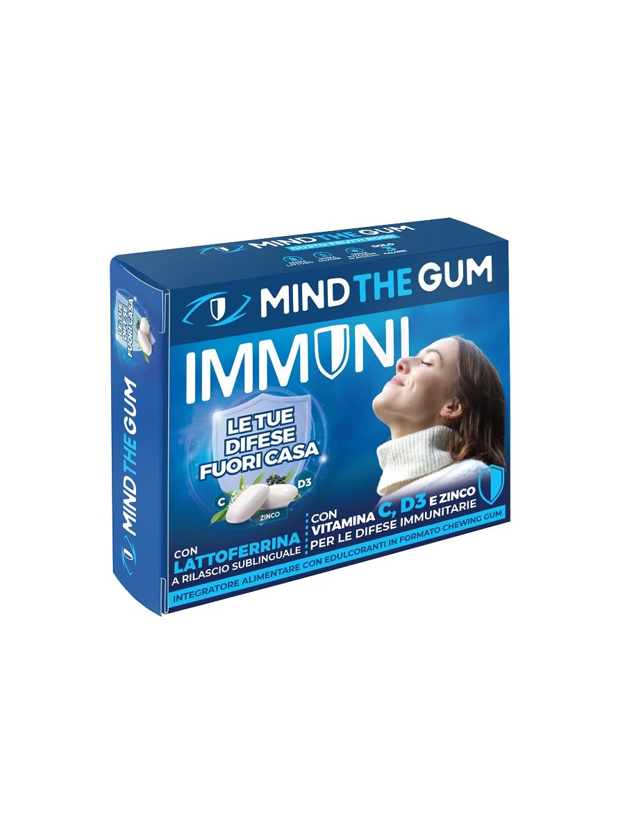 Immuni Mind The Gum to suplement diety w postaci gum do żucia z podjęzykowym uwalnianiem laktoferyny oraz witaminy C, witaminy D3, cynku i czarnego bzu, które wspierają układ odpornościowy i funkcjonowanie dróg oddechowych.