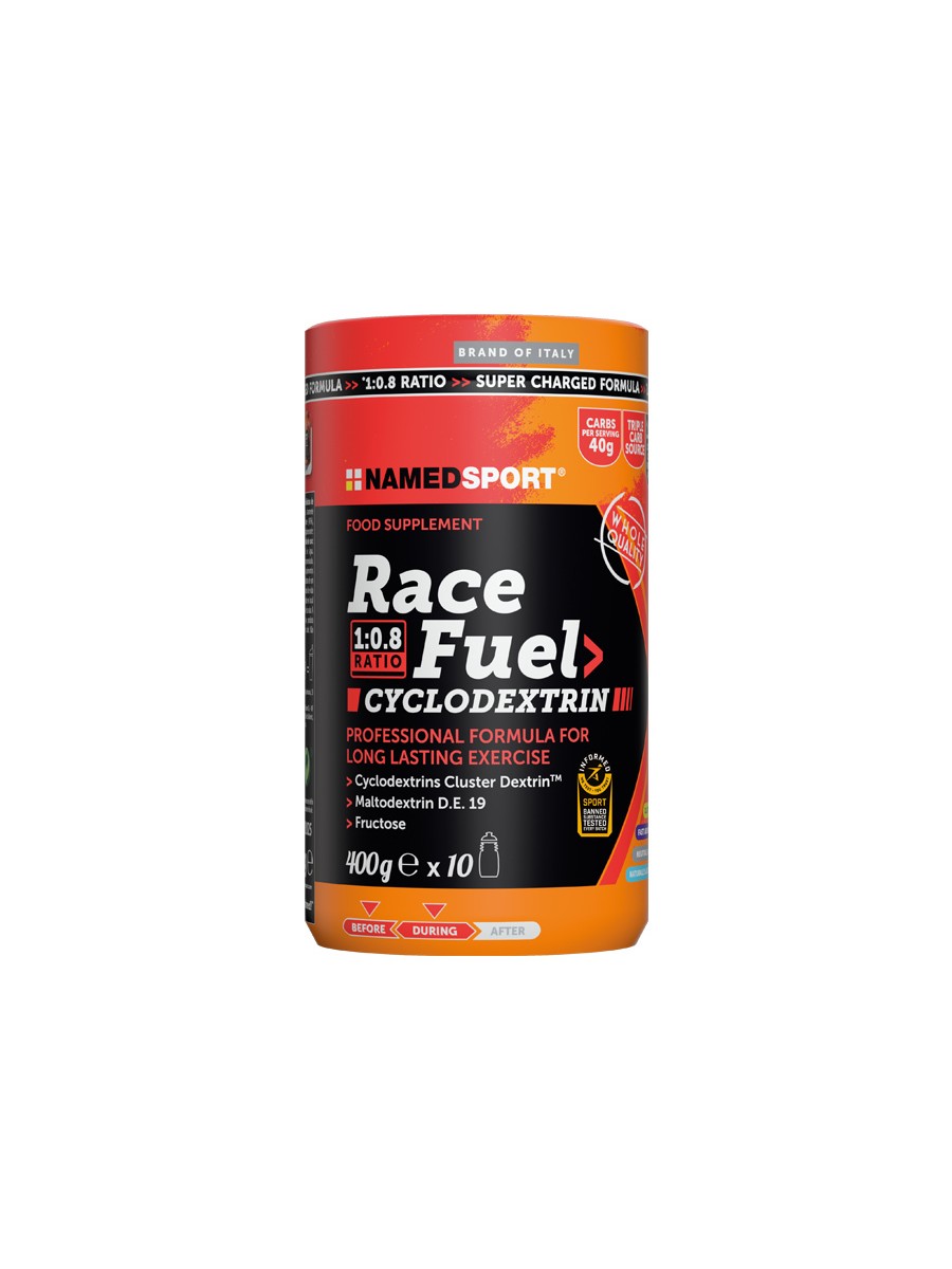 RaceFuel> doskonale sprawdzi się w sportach wytrzymałościowych, przy aktywności trwającej powyżej 1,5 godziny. Jego unikatowa formuła oparta jest na 3 źródłach węglowodanów – Cluster Dextrin™, maltodekstrynie DE 19 i fruktozie, skomponowanych w idealnych proporcjach 1:0,8. Stosunek ten pozwala w pełni wykorzystać utlenianie węglowodanów. Izotoniczna formuła napoju dla sportowców umożliwia błyskawiczne i efektywne wchłanianie składników odżywczych przez ścianę jelit.
