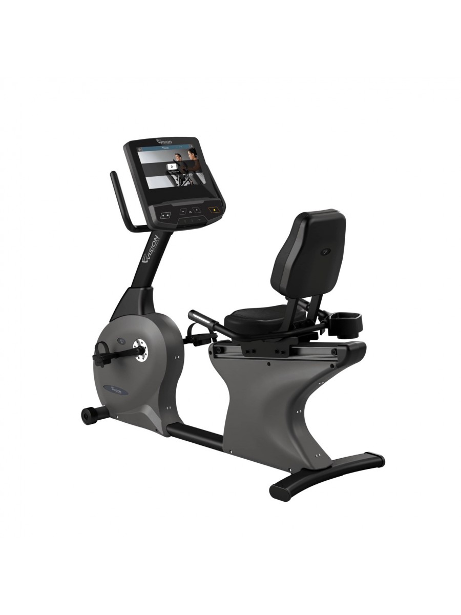 Rower poziomy R600E Recument Bike łączący komfort, wygodę i rozrywkę. Pozioma konstrukcja z ramą umożliwiającą przejście pozwala na trening o niskiej intensywności, a wyprofilowane siedzisko i oparcie z podkładką doskonałe podparcie lędźwi i stabilność.