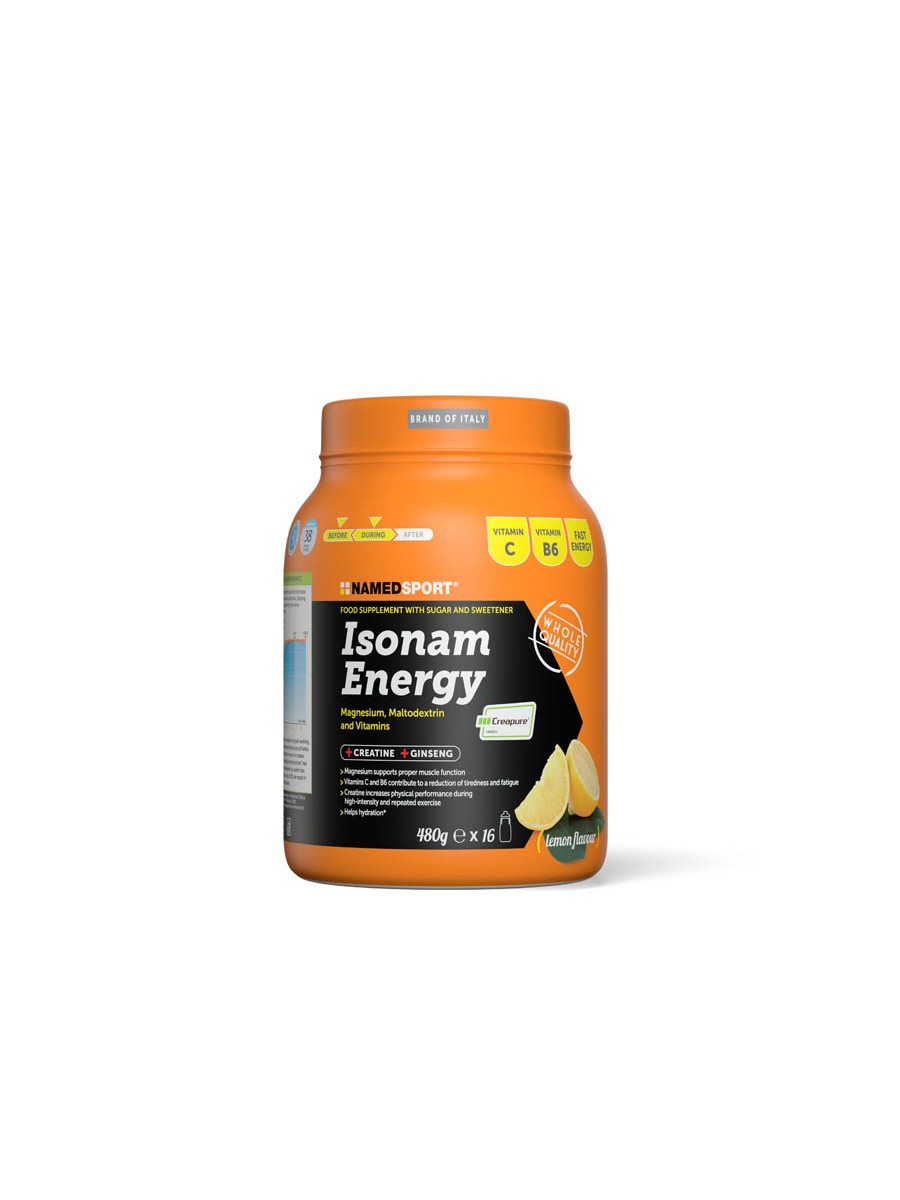 Izotonik w proszku do rozpuszczenia w wodzie o smaku cytryny. Doskonale nawadnia i dostarcza niezbędnych elektrolitów podczas wysiłku fizycznego. Isonam Energy to produkt dla osób profesjonalnie uprawiających sport oraz amatorów w dyscyplinach takich jak: bieganie, kolarstwo, czy sporty zespołowe. Formuła napoju wzbogacona została o składniki zwiększające wydolność oraz ekstrakt z żeń-szenia, który dodaje energii podczas treningu. Wyrazisty, kwaskowy smak cytryny dodatkowo orzeźwia i pobudza do działania podczas długich sesji treningowych. Jedno opakowanie produktu wystarcza na przygotowanie 16 porcji napoju.